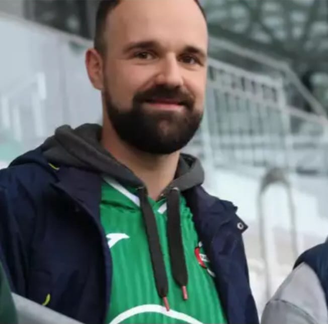 Pozycjanieoceniony pomocnik Wiek35 lat MiejscowośćLegionowoUrodzony w Iłży, wychowany w Radomiu. Nasz spec od transmisji meczów drużyny rezerw. Odpowiedzialny za poprawne działanie audycji live. Główny redaktor naszych profili na portalach społecznościowych. Z Radomiakiem połączył go gaz łzawiący na derbach w 2010 r. Zapalony kibic Legii Warszawa. Jedyny z ekipy, który ma odwagę przeciwstawić się kapitanowi drużyny.
