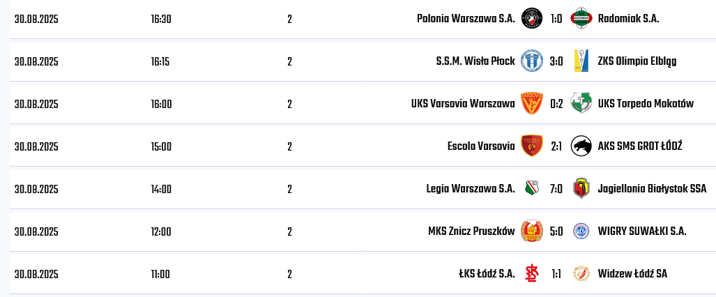 Rzućmy okiem na tabele i komplet wyników Ekstraklasy, Ligi Okręgowej i Centralnej Ligi Juniorów.