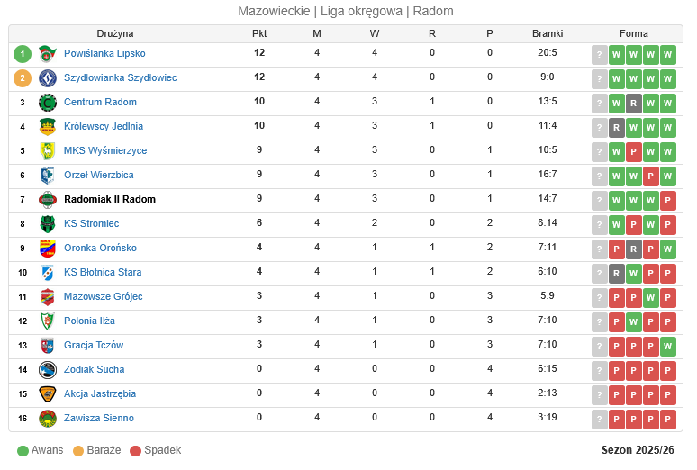 | Centrum Radom | 5-2 | Gracja Tczów | 30 sierpnia, 16:00 |