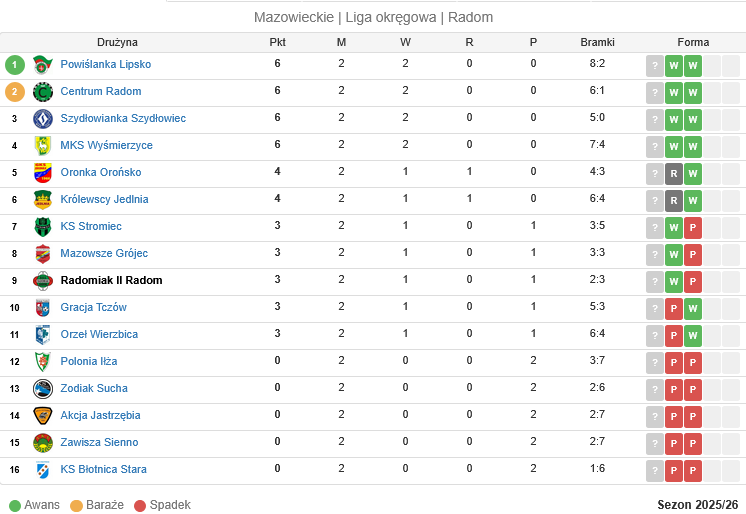 | Centrum Radom | 3-0 | Zawisza Sienno | 14 sierpnia, 18:15 |