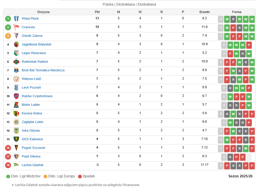 | Cracovia | 1-0 | Widzew Łódź | 15 sierpnia, 20:30 (12 794) |